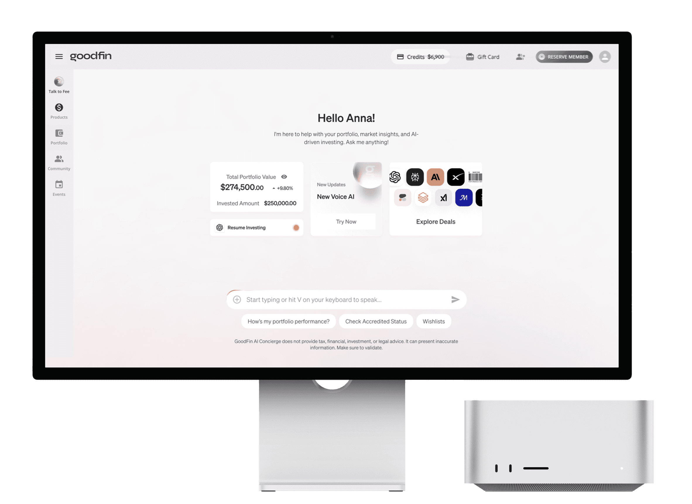 We are launching a user study to test our new AI Concierge, and we’re looking for a small group of accredited investors to try it out.
